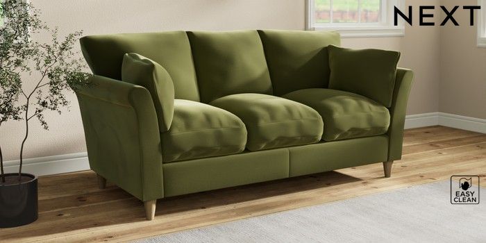 7.3.1 Buy Hartley Relaxed Sit 3 Cushion 3 Seater Sofa Plush Velvet Easy Clean Mid Olive Green Low Conical - Light from the Seasons online shop Click here to use our website with more accessibility support, for example screen readers