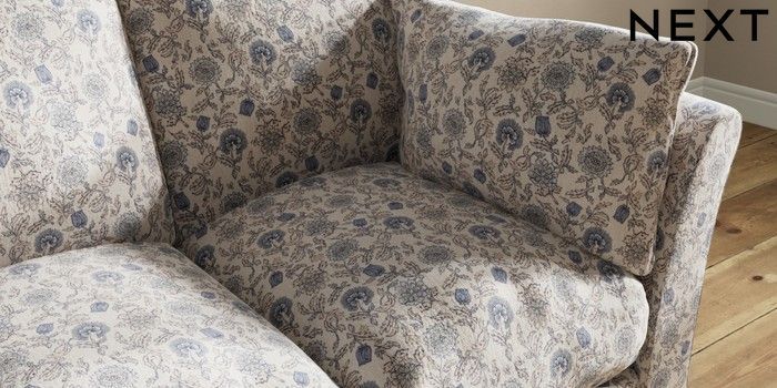 7.3.1 Buy Hartley Relaxed Sit 3 Cushion 3 Seater Sofa Relaxed Linen Look Print Woodblock Floral Blue Low Conical - Light from the Seasons online shop