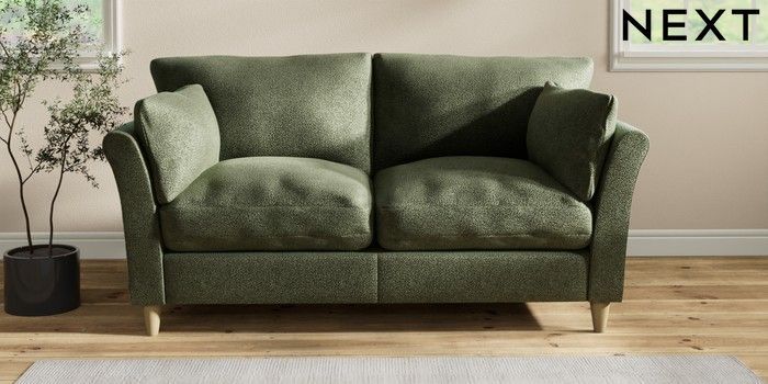 7.2.10 Buy Hartley Relaxed Sit 3 Seater Small Sofa Boucle Chenille Dark Moss Green Low Conical - Light from the Seasons online shop Click here to use our website with more accessibility support, for example screen readers