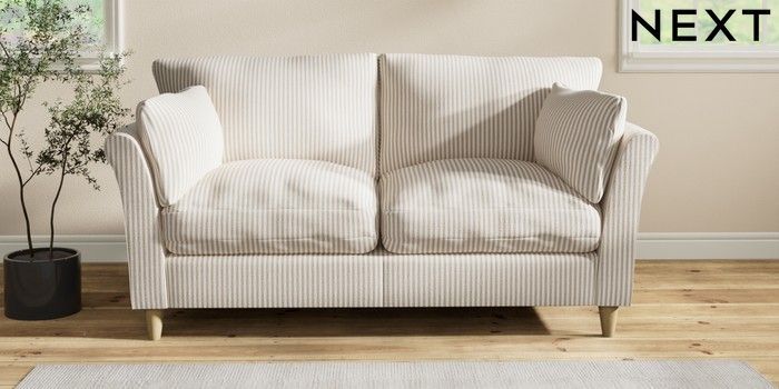 7.2.10 Buy Hartley Relaxed Sit 3 Seater Small Sofa Chenille Stripe Natural Low Conical - Light from the Seasons online shop Click here to use our website with more accessibility support, for example screen readers