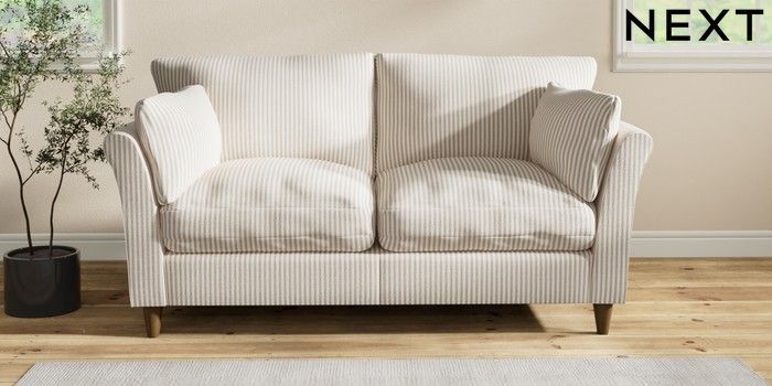 7.2.10 Buy Hartley Relaxed Sit 3 Seater Small Sofa Chenille Stripe Natural Low Conical - Mid from the Seasons online shop Click here to use our website with more accessibility support, for example screen readers