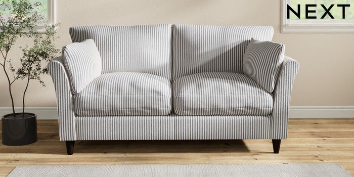 7.2.10 Buy Hartley Relaxed Sit 3 Seater Small Sofa Chenille Stripe Slate Blue Low Conical - Dark from the Seasons online shop Click here to use our website with more accessibility support, for example screen readers