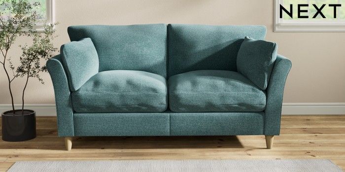 7.2.10 Buy Hartley Relaxed Sit 3 Seater Small Sofa Chunky Chenille Mid Teal Green Low Conical - Light from the Seasons online shop Click here to use our website with more accessibility support, for example screen readers
