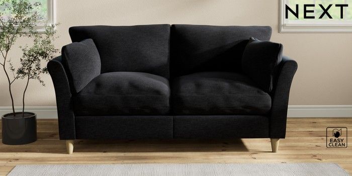 7.2.10 Buy Hartley Relaxed Sit 3 Seater Small Sofa Fine Chenille Easy Clean Black Low Conical - Light from the Seasons online shop Click here to use our website with more accessibility support, for example screen readers