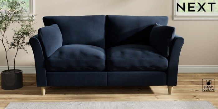 7.2.10 Buy Hartley Relaxed Sit 3 Seater Small Sofa Fine Chenille Easy Clean Dark Navy Blue Low Conical - Light from the Seasons online shop Click here to use our website with more accessibility support, for example screen readers