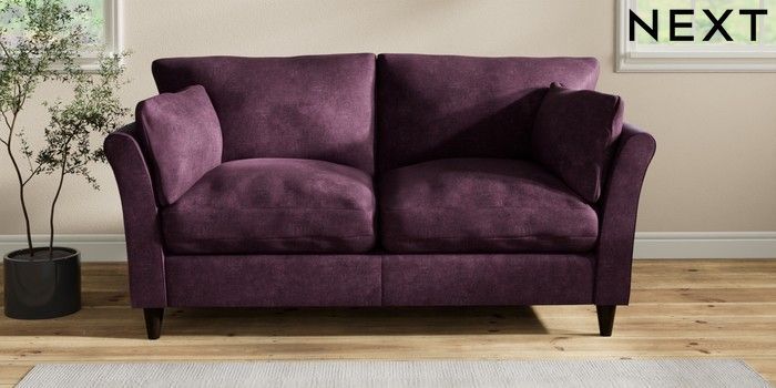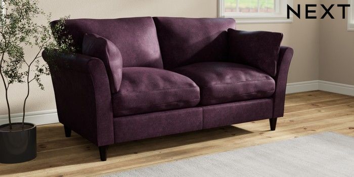 7.3.1 Buy Hartley Relaxed Sit 3 Seater Small Sofa Plush Chenille Dark Plum Purple Low Conical - Dark from the Seasons online shop Click here to use our website with more accessibility support, for example screen readers