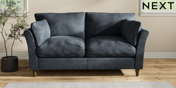 7.2.10 Buy Hartley Relaxed Sit 3 Seater Small Sofa Plush Chenille Slate Blue Low Conical - Mid from the Seasons online shop Click here to use our website with more accessibility support, for example screen readers