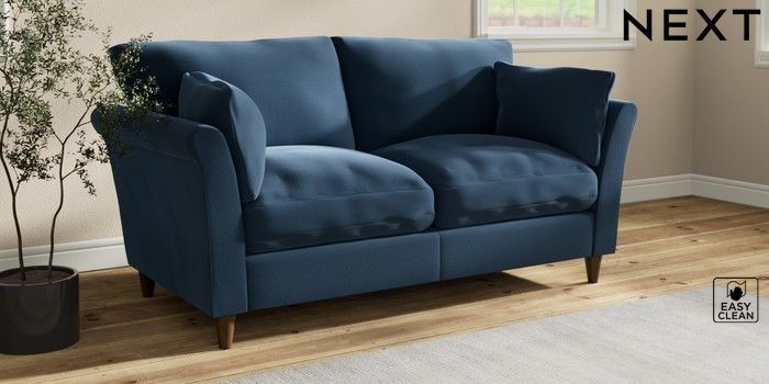 7.3.1 Buy Hartley Relaxed Sit 3 Seater Small Sofa Plush Velvet Easy Clean Airforce Blue Low Conical - Mid from the Seasons online shop Click here to use our website with more accessibility support, for example screen readers