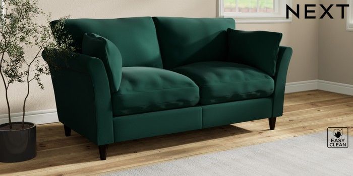 7.3.1 Buy Hartley Relaxed Sit 3 Seater Small Sofa Plush Velvet Easy Clean Bottle Green Low Conical - Dark from the Seasons online shop Click here to use our website with more accessibility support, for example screen readers