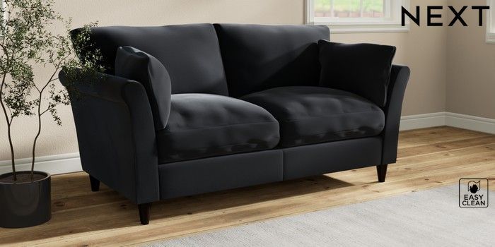 7.3.1 Buy Hartley Relaxed Sit 3 Seater Small Sofa Plush Velvet Easy Clean Charcoal Grey Low Conical - Dark from the Seasons online shop Click here to use our website with more accessibility support, for example screen readers