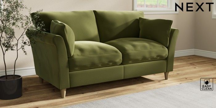 7.3.1 Buy Hartley Relaxed Sit 3 Seater Small Sofa Plush Velvet Easy Clean Mid Olive Green Low Conical - Light from the Seasons online shop Click here to use our website with more accessibility support, for example screen readers