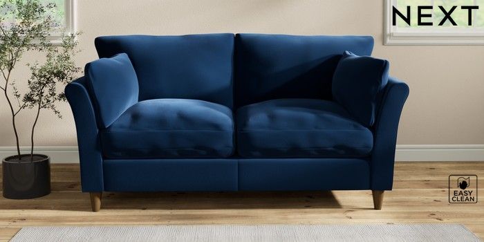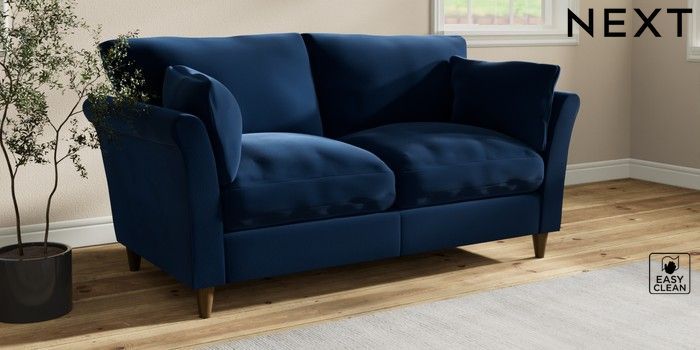 7.3.1 Buy Hartley Relaxed Sit 3 Seater Small Sofa Plush Velvet Easy Clean Navy Blue Low Conical - Mid from the Seasons online shop Click here to use our website with more accessibility support, for example screen readers