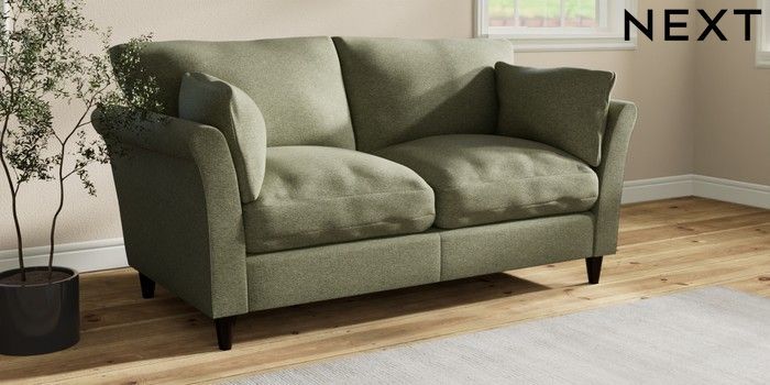 7.3.1 Buy Hartley Relaxed Sit 3 Seater Small Sofa Tweedy Chenille Mid Moss Green Low Conical - Dark from the Seasons online shop Click here to use our website with more accessibility support, for example screen readers