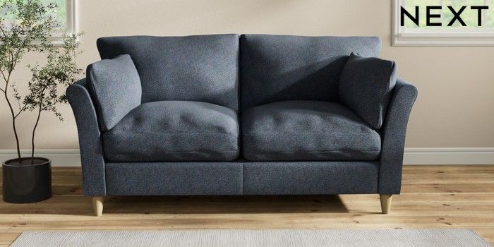 7.2.10 Buy Hartley Relaxed Sit 3 Seater Small Sofa Tweedy Chenille Navy Blue Low Conical - Light from the Seasons online shop Click here to use our website with more accessibility support, for example screen readers