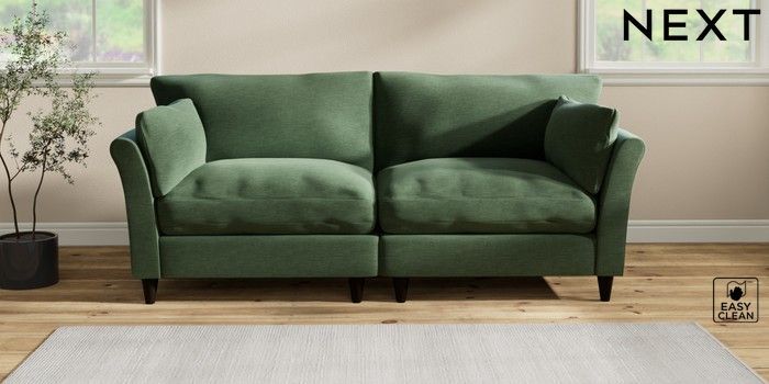 7.3.1 Buy Hartley Relaxed Sit 4 Seater Sofa Fine Chenille Easy Clean Mid Khaki Green Low Conical - Dark from the Seasons online shop Click here to use our website with more accessibility support, for example screen readers
