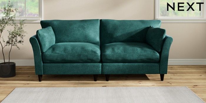 7.2.10 Buy Hartley Relaxed Sit 4 Seater Sofa Plush Chenille Dark Teal Green Low Conical - Dark from the Seasons online shop Click here to use our website with more accessibility support, for example screen readers