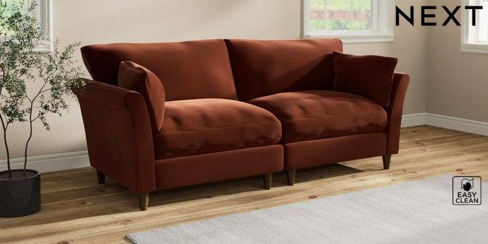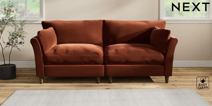 7.3.1 Buy Hartley Relaxed Sit 4 Seater Sofa Plush Velvet Easy Clean Ginger Orange Low Conical - Mid from the Seasons online shop Click here to use our website with more accessibility support, for example screen readers