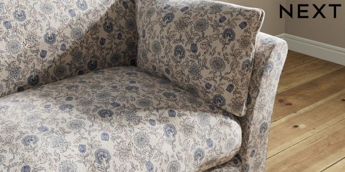 7.3.1 Buy Hartley Relaxed Sit 4 Seater Sofa Relaxed Linen Look Print Woodblock Floral Blue Low Conical - Dark from the Seasons online shop Click here to use our website with more accessibility support, for example screen readers