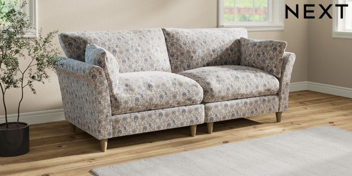 7.3.1 Buy Hartley Relaxed Sit 4 Seater Sofa Relaxed Linen Look Print Woodblock Floral Blue Low Conical - Light from the Seasons online shop Click here to use our website with more accessibility support, for example screen readers