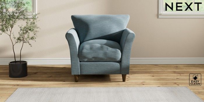 7.2.10 Buy Hartley Relaxed Sit Armchair Fine Chenille Easy Clean Mid Blue Low Conical - Mid from the Seasons online shop Click here to use our website with more accessibility support, for example screen readers