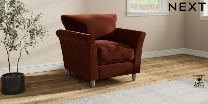 7.3.1 Buy Hartley Relaxed Sit Armchair Plush Velvet Easy Clean Ginger Orange Low Conical - Light from the Seasons online shop Click here to use our website with more accessibility support, for example screen readers