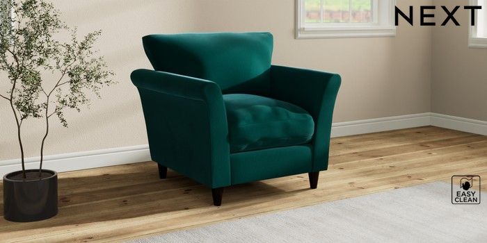 7.3.1 Buy Hartley Relaxed Sit Armchair Plush Velvet Easy Clean Juniper Green Low Conical - Dark from the Seasons online shop Click here to use our website with more accessibility support, for example screen readers