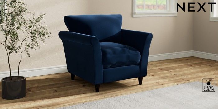 7.3.1 Buy Hartley Relaxed Sit Armchair Plush Velvet Easy Clean Navy Blue Low Conical - Dark from the Seasons online shop Click here to use our website with more accessibility support, for example screen readers