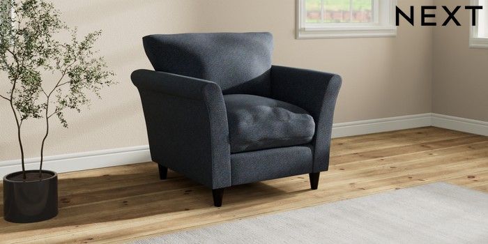 7.3.1 Buy Hartley Relaxed Sit Armchair Tweedy Chenille Navy Blue Low Conical - Dark from the Seasons online shop Click here to use our website with more accessibility support, for example screen readers