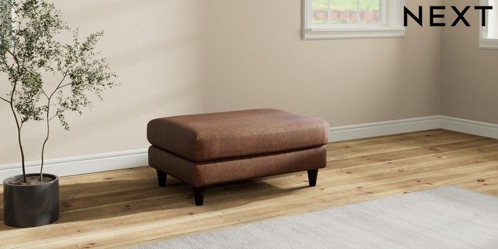 7.3.1 Buy Hartley Relaxed Sit Footstool Monza Faux Leather Easy Clean Chestnut Brown Low Conical - Dark from the Seasons online shop Click here to use our website with more accessibility support, for example screen readers