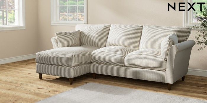 7.2.10 Buy Hartley Relaxed Sit Medium Sofa Chaise - Left Hand Chenille Stripe Moss Green Low Conical - Mid from the Seasons online shop Click here to use our website with more accessibility support, for example screen readers