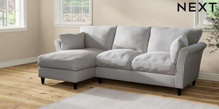 7.2.10 Buy Hartley Relaxed Sit Medium Sofa Chaise - Left Hand Chenille Stripe Slate Blue Low Conical - Dark from the Seasons online shop Click here to use our website with more accessibility support, for example screen readers