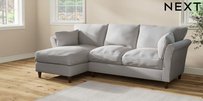7.2.10 Buy Hartley Relaxed Sit Medium Sofa Chaise - Left Hand Chenille Stripe Slate Blue Low Conical - Mid from the Seasons online shop Click here to use our website with more accessibility support, for example screen readers