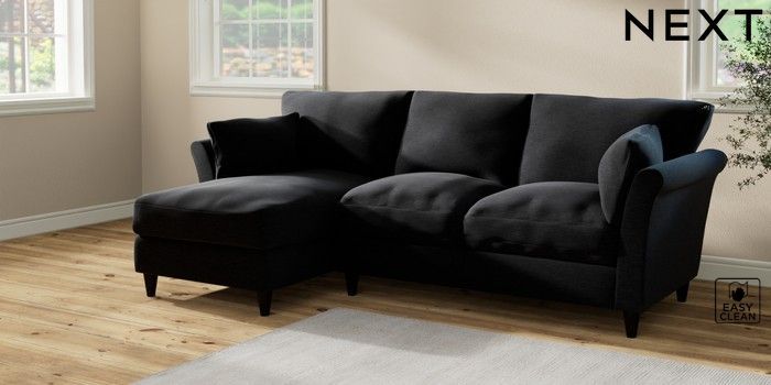 7.2.10 Buy Hartley Relaxed Sit Medium Sofa Chaise - Left Hand Fine Chenille Easy Clean Black Low Conical - Dark from the Seasons online shop Click here to use our website with more accessibility support, for example screen readers