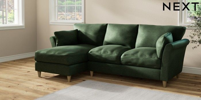 7.2.10 Buy Hartley Relaxed Sit Medium Sofa Chaise - Left Hand Luxe Chenille Dark Green Low Conical - Light from the Seasons online shop Click here to use our website with more accessibility support, for example screen readers
