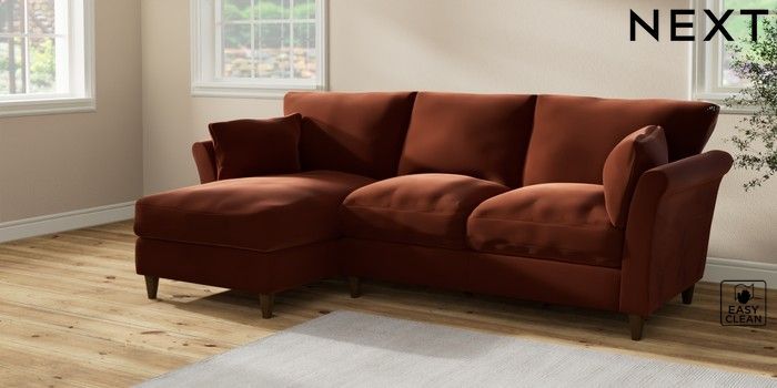 7.2.10 Buy Hartley Relaxed Sit Medium Sofa Chaise - Left Hand Plush Velvet Easy Clean Ginger Orange Low Conical - Mid from the Seasons online shop Click here to use our website with more accessibility support, for example screen readers