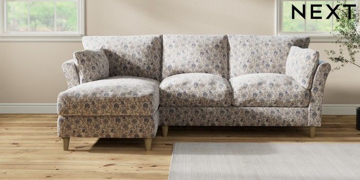 7.3.1 Buy Hartley Relaxed Sit Medium Sofa Chaise - Left Hand Relaxed Linen Look Print Woodblock Floral Blue Low Conical - Light from the Seasons online shop Click here to use our website with more accessibility support, for example screen readers