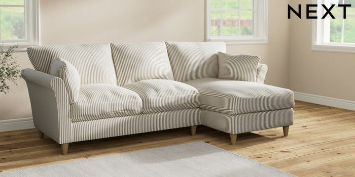 7.2.10 Buy Hartley Relaxed Sit Medium Sofa Chaise - Right Hand Chenille Stripe Moss Green Low Conical - Light from the Seasons online shop Click here to use our website with more accessibility support, for example screen readers