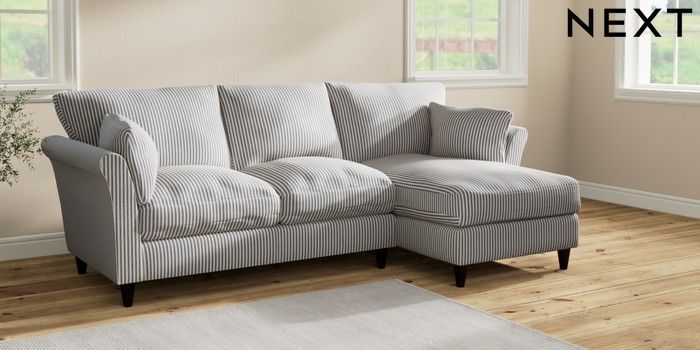 7.2.10 Buy Hartley Relaxed Sit Medium Sofa Chaise - Right Hand Chenille Stripe Slate Blue Low Conical - Dark from the Seasons online shop Click here to use our website with more accessibility support, for example screen readers