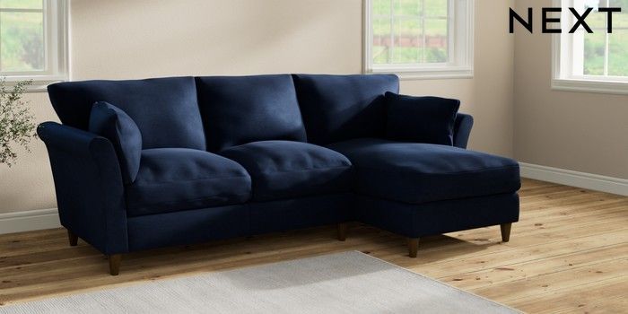 7.2.10 Buy Hartley Relaxed Sit Medium Sofa Chaise - Right Hand Luxe Chenille Navy Blue Low Conical - Mid from the Seasons online shop Click here to use our website with more accessibility support, for example screen readers