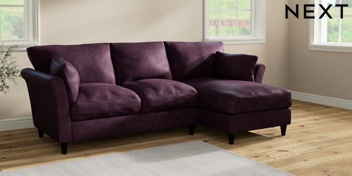 7.3.1 Buy Hartley Relaxed Sit Medium Sofa Chaise - Right Hand Plush Chenille Dark Plum Purple Low Conical - Dark from the Seasons online shop Click here to use our website with more accessibility support, for example screen readers