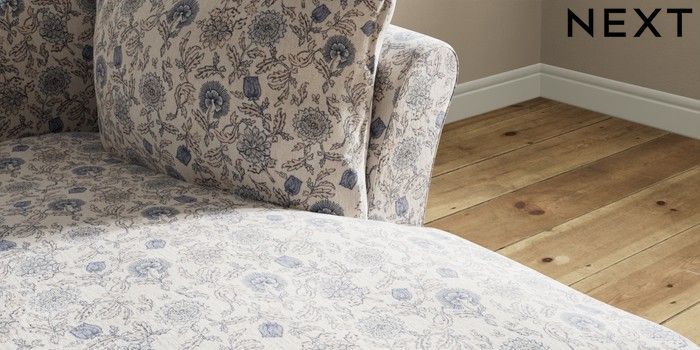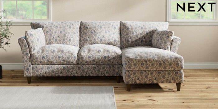 7.3.1 Buy Hartley Relaxed Sit Medium Sofa Chaise - Right Hand Relaxed Linen Look Print Woodblock Floral Blue Low Conical - Mid from the Seasons online shop Click here to use our website with more accessibility support, for example screen readers