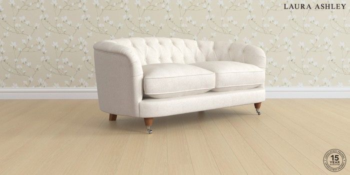 7.3.1 Buy Hathersage by Laura Ashley 2 Seater Sofa Anneliese Oyster Natural Low Chrome Castor - Teak from the Seasons online shop Click here to use our website with more accessibility support, for example screen readers