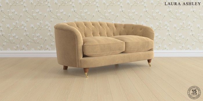 7.3.1 Buy Hathersage by Laura Ashley 2 Seater Sofa Lundar Chenille Caramel Natural Low Brass Castor - Teak from the Seasons online shop Click here to use our website with more accessibility support, for example screen readers