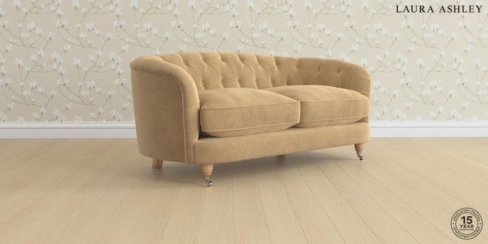 7.3.1 Buy Hathersage by Laura Ashley 2 Seater Sofa Lundar Chenille Caramel Natural Low Chrome Castor - Light Oak from the Seasons online shop Click here to use our website with more accessibility support, for example screen readers