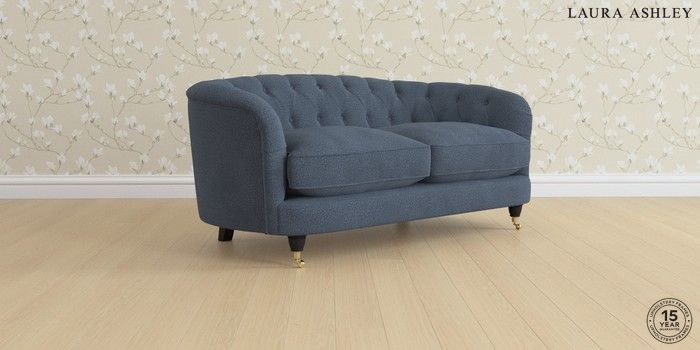7.3.1 Buy Hathersage by Laura Ashley 2 Seater Sofa Lundar Chenille Navy Blue Low Brass Castor - Black from the Seasons online shop Click here to use our website with more accessibility support, for example screen readers