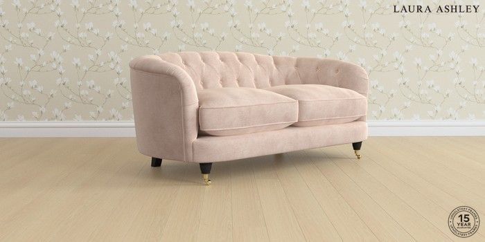 7.3.1 Buy Hathersage by Laura Ashley 2 Seater Sofa Orla Chalk Pink Low Brass Castor - Black from the Seasons online shop Click here to use our website with more accessibility support, for example screen readers