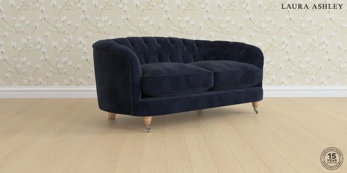 7.3.1 Buy Hathersage by Laura Ashley 2 Seater Sofa Orla Midnight Navy Low Chrome Castor - Light Oak from the Seasons online shop Click here to use our website with more accessibility support, for example screen readers