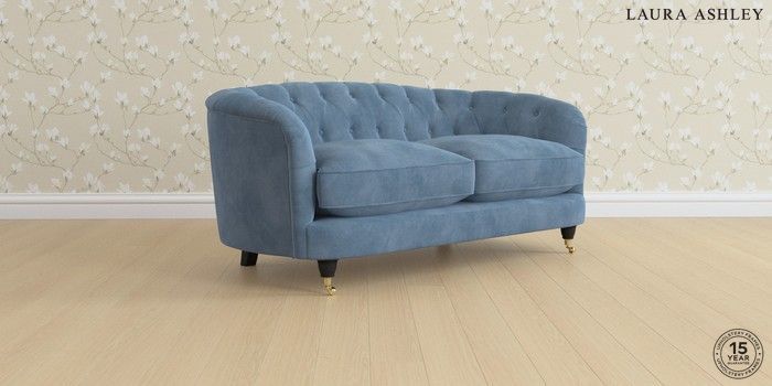 7.3.1 Buy Hathersage by Laura Ashley 2 Seater Sofa Orla Seaspray Blue Low Brass Castor - Black from the Seasons online shop Click here to use our website with more accessibility support, for example screen readers