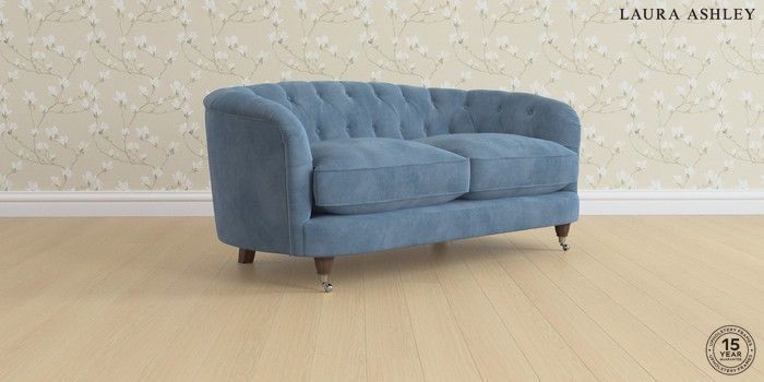 7.3.1 Buy Hathersage by Laura Ashley 2 Seater Sofa Orla Seaspray Blue Low Chrome Castor - Chestnut from the Seasons online shop Click here to use our website with more accessibility support, for example screen readers