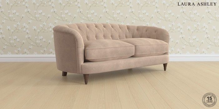 7.3.1 Buy Hathersage by Laura Ashley 3 Seater Small Sofa Ailsworth Mink Natural Low Turned - Chestnut from the Seasons online shop Click here to use our website with more accessibility support, for example screen readers